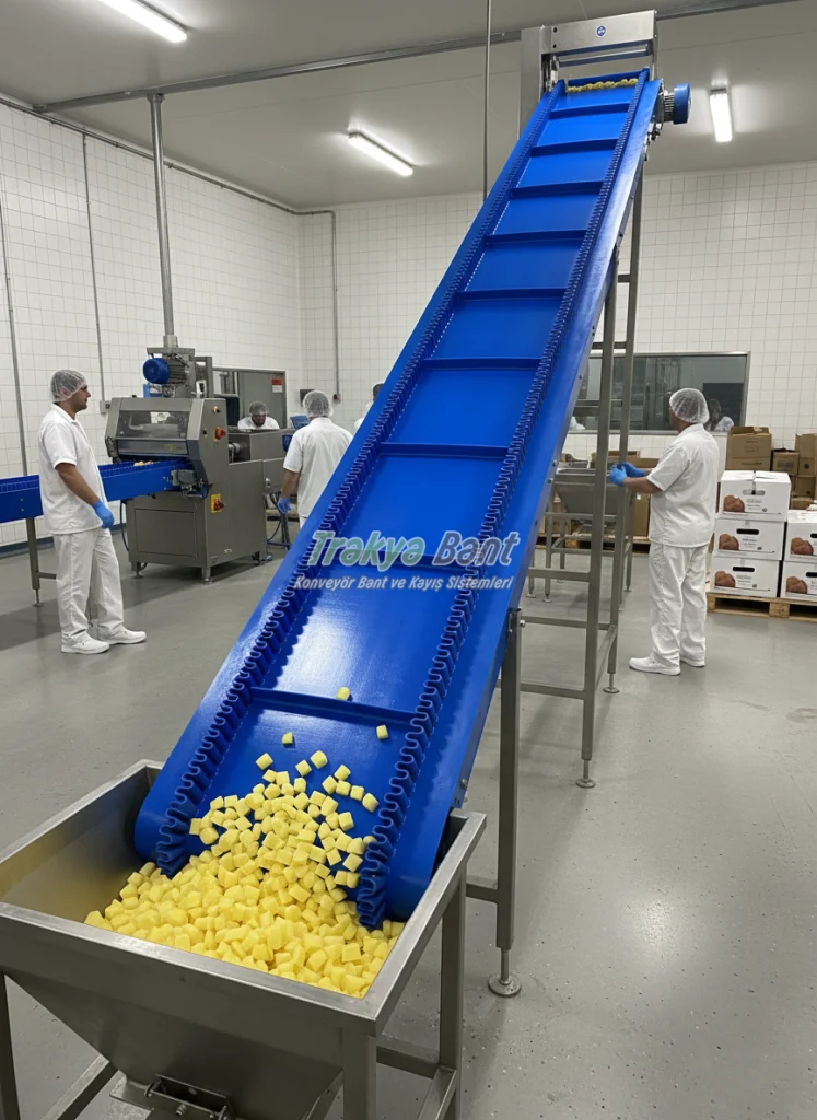 Eğim ve Hız: Taşıma mesafesi ve hattın eğimi, motor gücü ve bant yüzey dokusunu belirler.